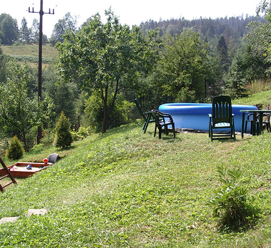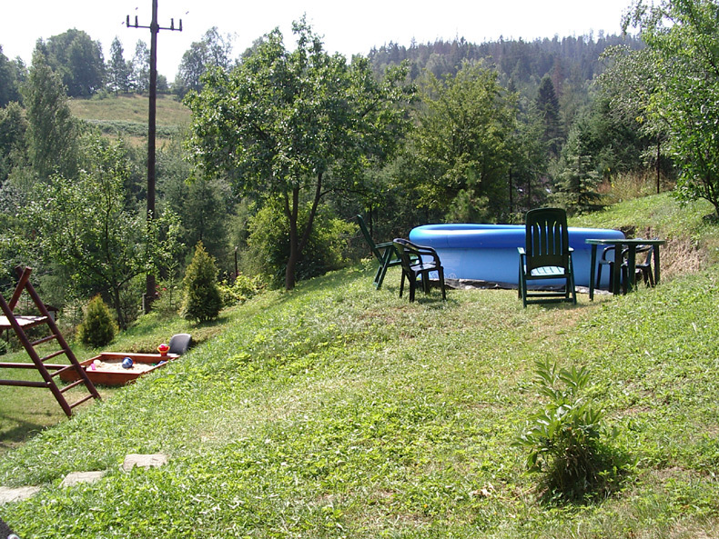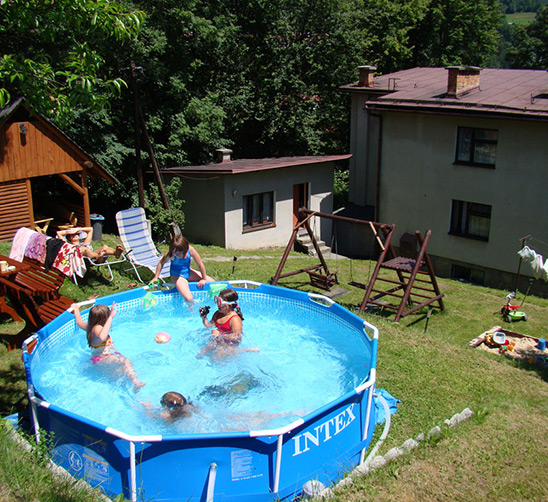 Duży ogród z basenem, plac zabaw dla dzieci, parking ...
