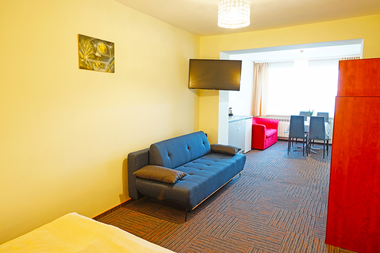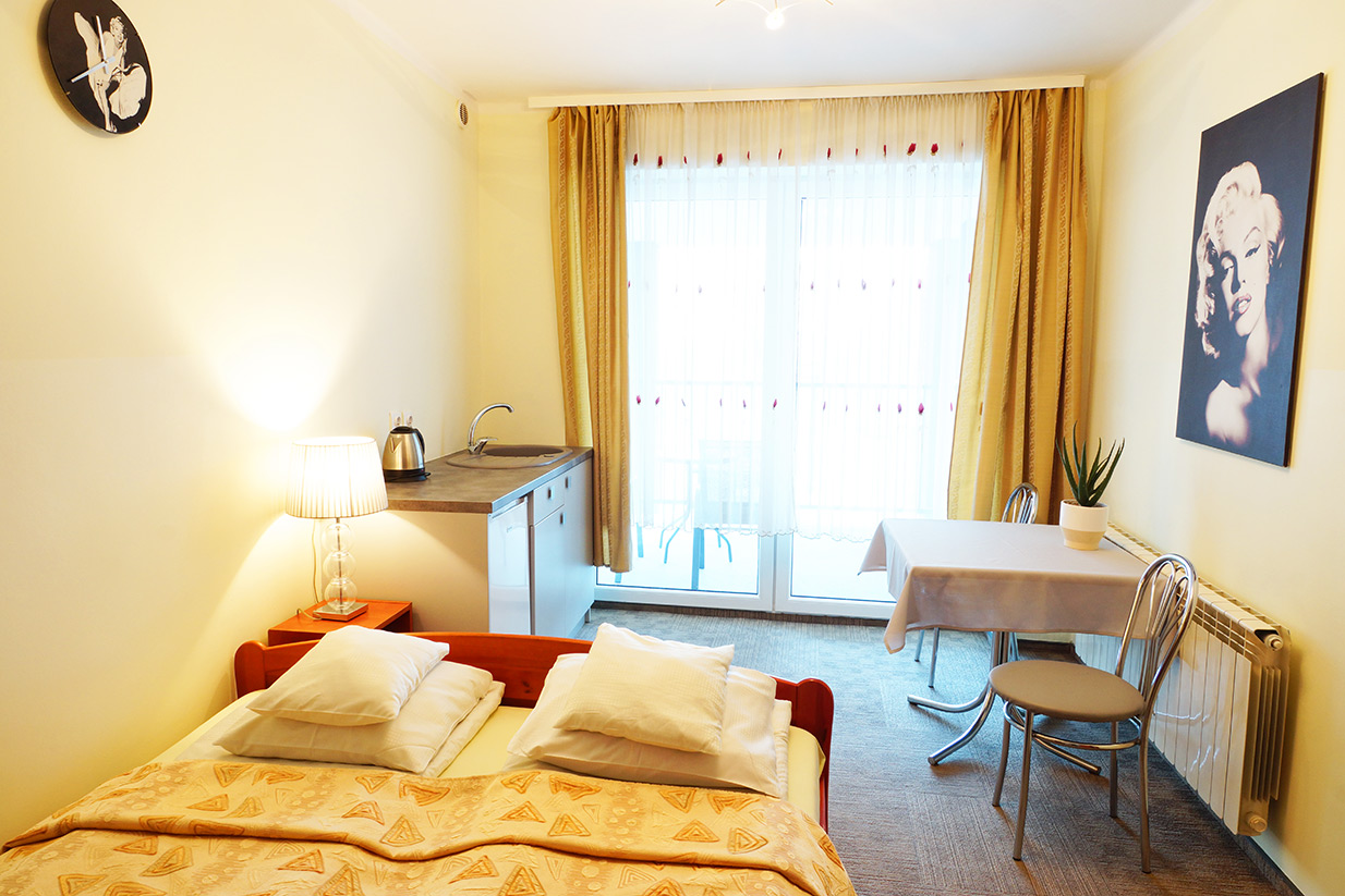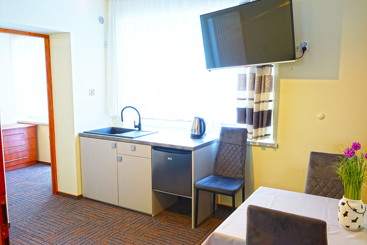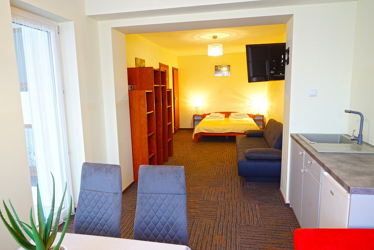 Wygodne pokoje z łazienkami, TV, aneksy kuchenne ...