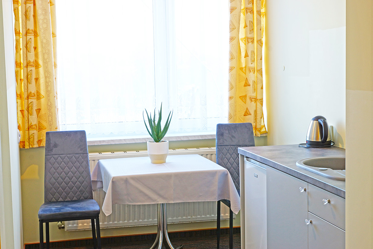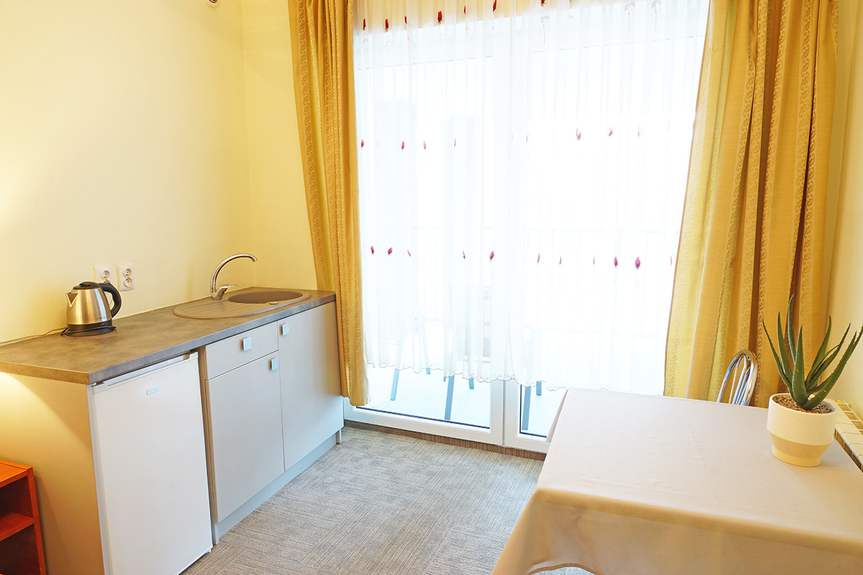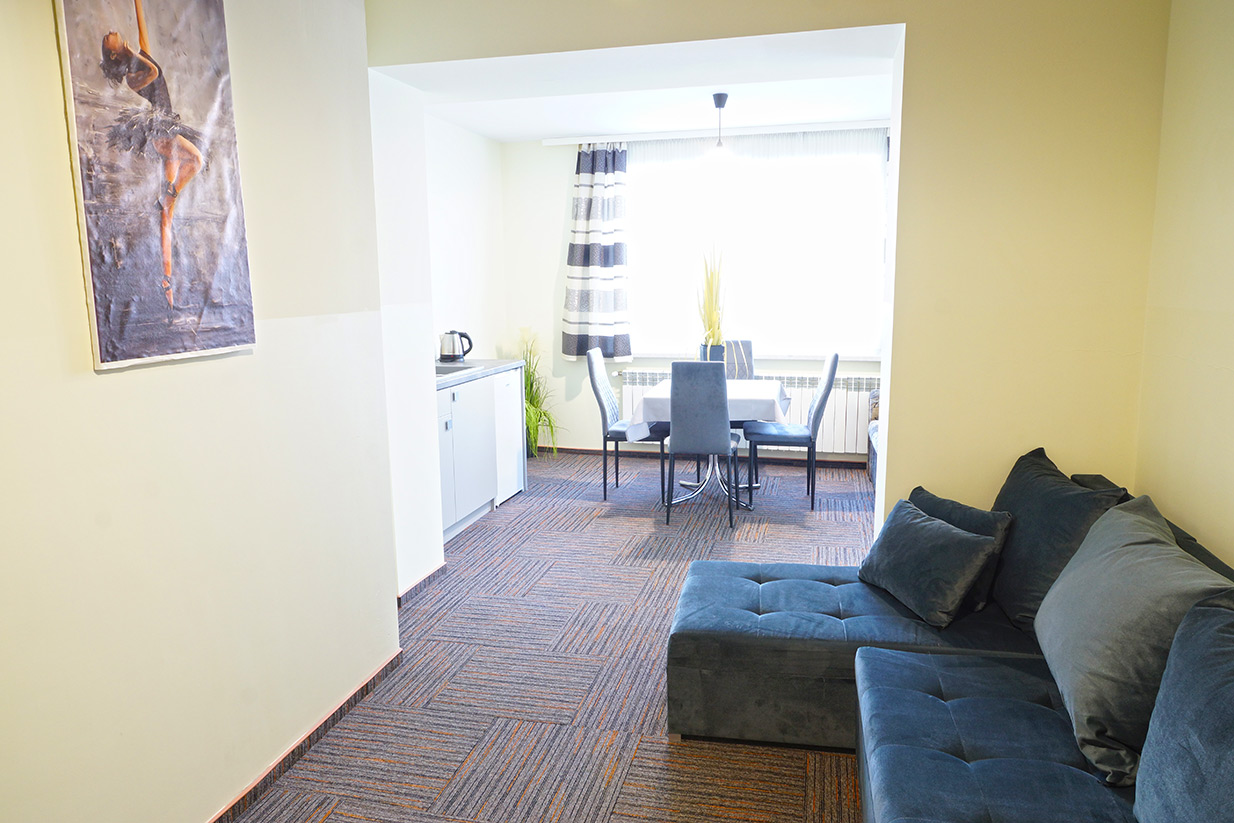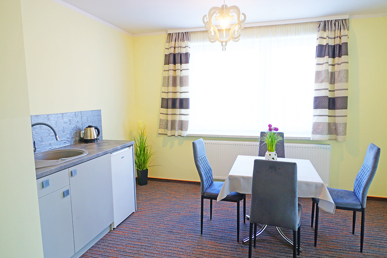 Wygodne pokoje z łazienkami, TV, aneksy kuchenne ...
